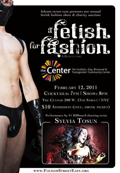 Then, on Saturday, Feb. 12th, from 7pm-10pm at the LGBT Center is the exciting “A FETISH FOR FASHION” event! This fashion show and charity auction will feature some of the city’s fiercest leather/fetish/kink-wear designers as well as a silent auction to benefit The Center. And just to give you a bit more incentive to attend, I will be strutting down the catwalk at this event in my modeling premiere (expect a recap blog entry next week).