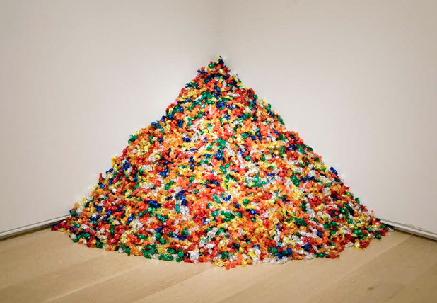 "Untitled" (Portrait of Ross in L.A.) by Félix González-Torres (American, 1957–1996). 1991. Candies individually wrapped in multicolored cellophane, endless supply. Overall dimensions vary with installation, ideal weight: 175 lb.