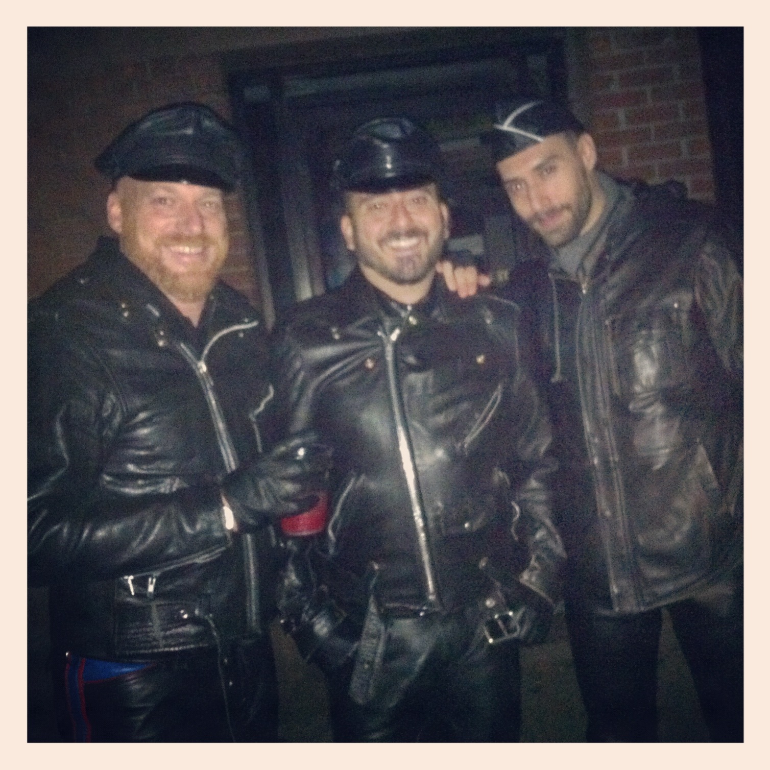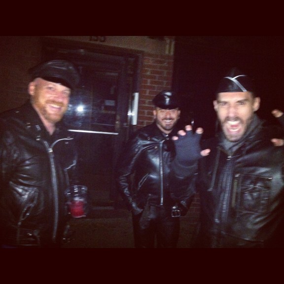 Walking around in leather during a blackout is exactly what one should do in NYC. A cop car slowly drives by and jokingly announces over their speaker, “We’ve got em, three burglars, all in black!” We laugh and then encounter a solitary figure sitting in the dark who recognizes our leather and exclaims, “It’s like Germany in the 1940’s!” Assuming this is a reference to Tom of Finland, no greater compliment could be paid. He takes some photos and we wish him well and plunge onward into the night.